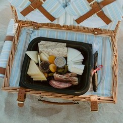 Charcuterie boxes that include a variety of meat, cheese and crackers to snack on during your picnic